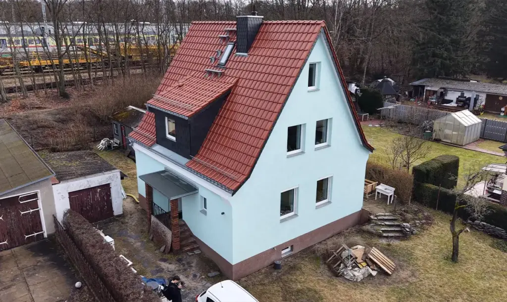 Nach der Energieberatung samt Sanierungsfahrplan beantragten wir die Förderung der Maßnahmen und begleiteten alles bis zur Fertigstellung. Neben viel Einsparung und Werterhöhung gewann der Kunde auch neuen Wohnraum im Dachgeschoss dazu.